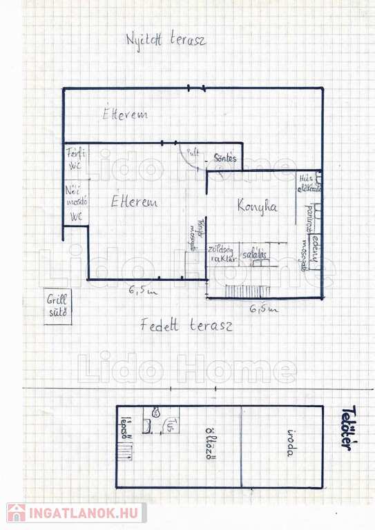 - 357 m2-es területen, 250 nm-es étterem, helyiségei: első terasz, zárt tér, konyhával, kiszolgáló helyiségekkel, hátsó terasz strandkapcsolattal, a tetőtérben iroda (vagy öltöző), szoba, fürdőszoba zuhanyzóval és WC-vel