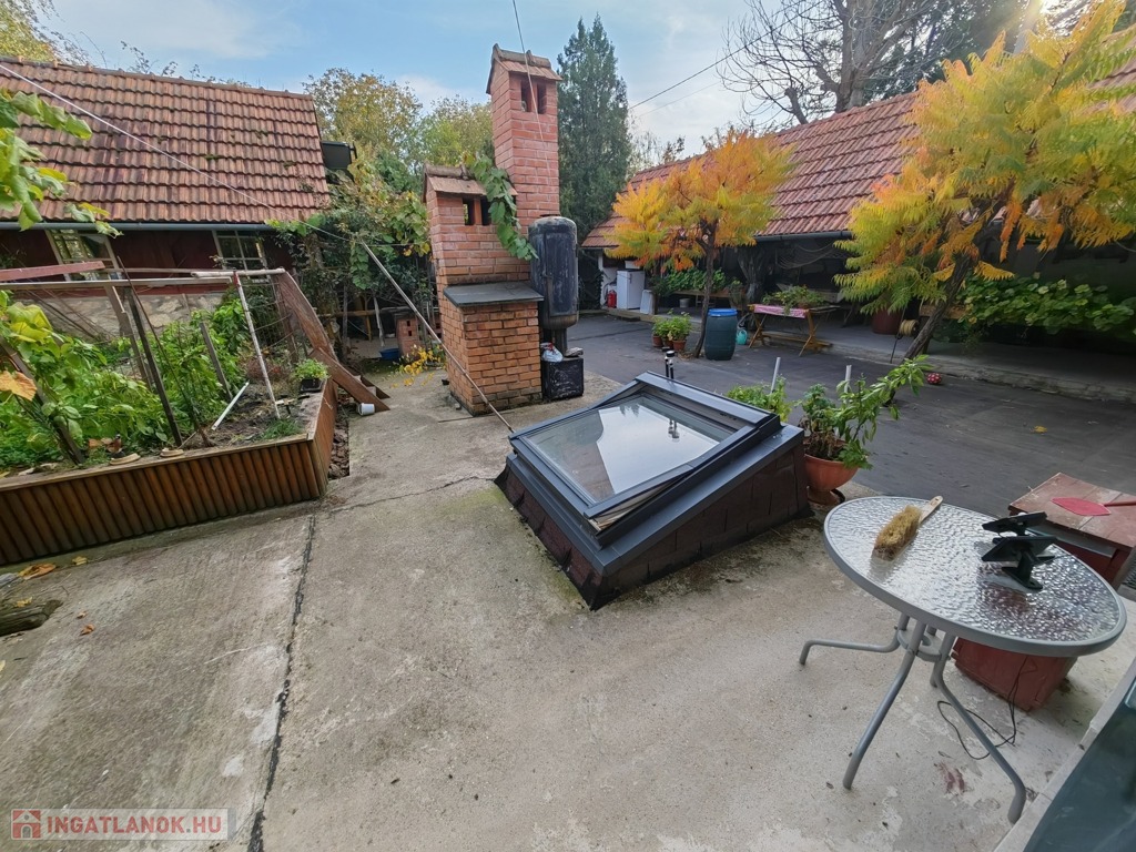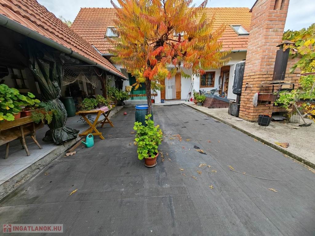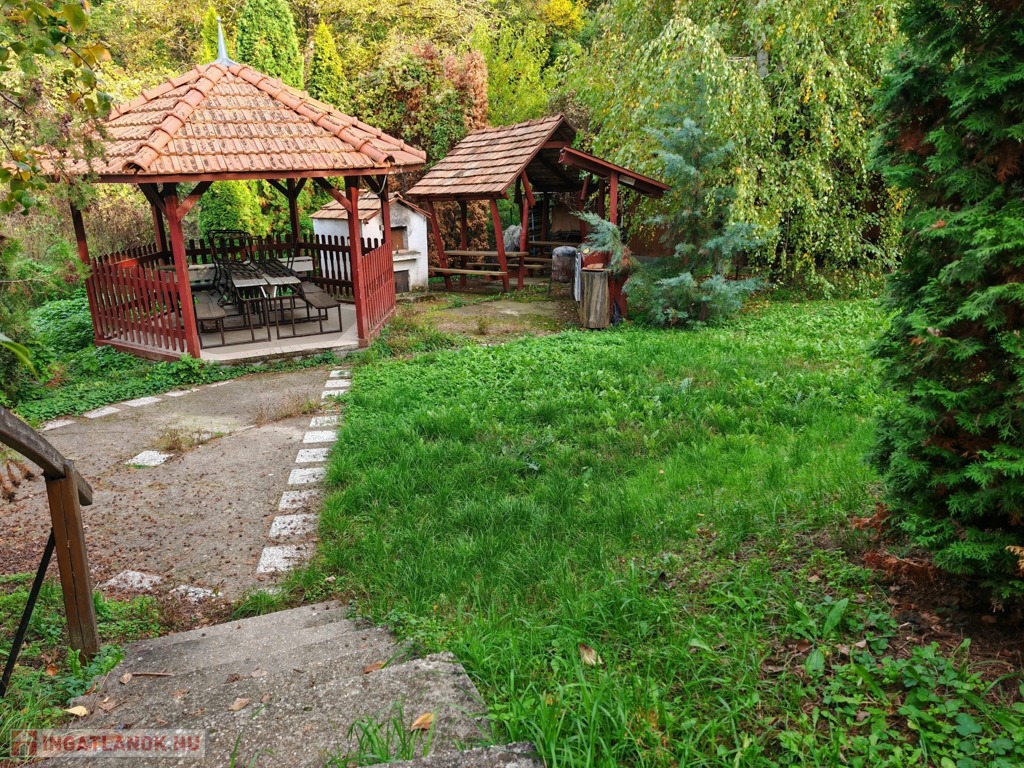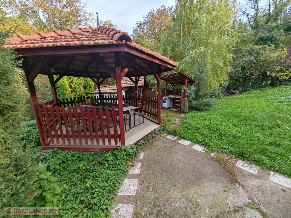 A házhoz nagy, privát terasz tartozik, ahol kerti sütögető és fedett étkező is található, így ideális vendégek fogadására. A telket teljesen körbekerítették, biztosítva a teljes magánszférát. Az elhelyezkedésnek köszönhetően egyetlen irányból sincs belátás. A meleg víz ellátását napelemek biztosítják, a fűtésről pedig fatüzelésű kazán gondoskodik.