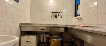 - Az iroda laminált padló; a kazánház és a zöldséges raktár beton; a többi helyiség járólap, kő burkolatú.