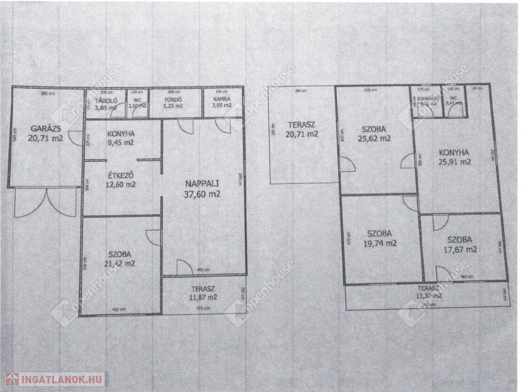 - alapterület: 191nm + 20.71nm (garázs) + 34.08nm (terasz)