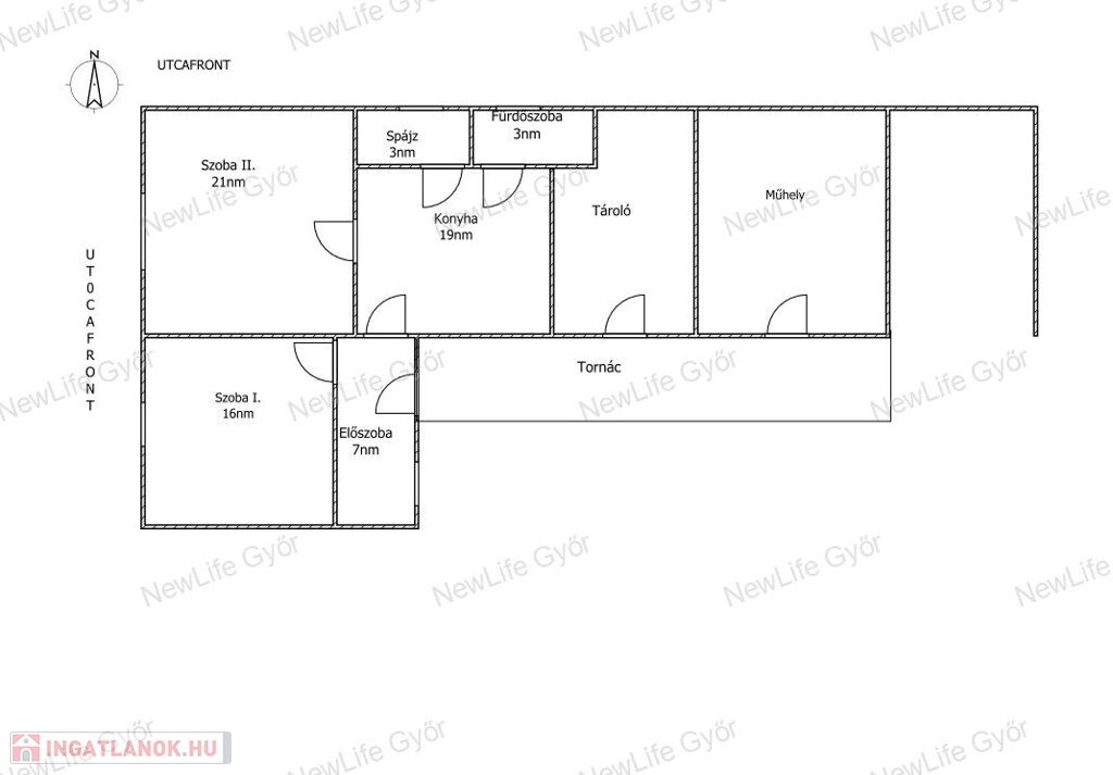 A ház 3 szobás. 70 nm-es alapterületű,mely mellett még 2 műhely-tároló is megtalálható.