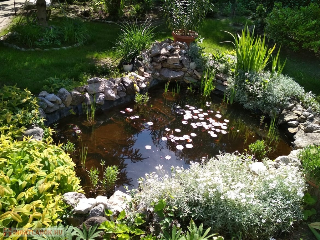 A gyönyörűen parkosított udvar automata öntözőrendszerrel és kerti grillezővel van ellátva.