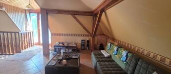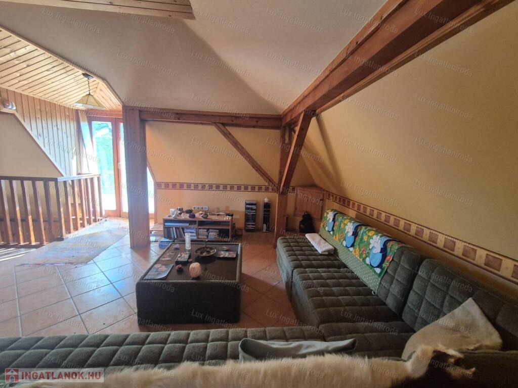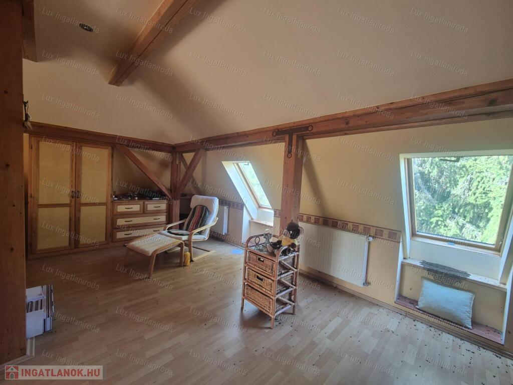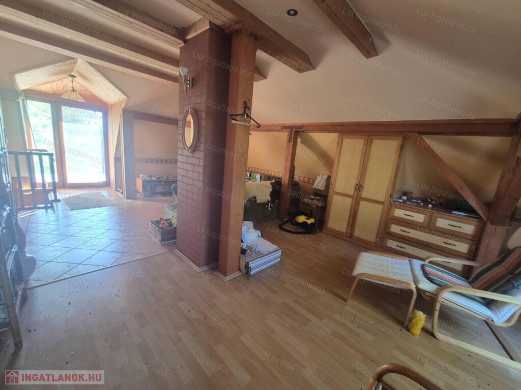- Felső szint: tágas szoba, nagy méretű fürdőszoba, valamint egy kb. 20 nm-es terasz, ahonnan lenyűgöző kilátás nyílik az erdőre