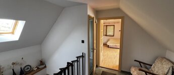 Emelet: közlekedő, három szoba, zuhanyzós fürdőszoba és külön WC.