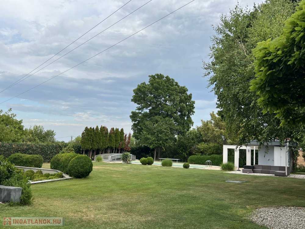 A gondozott kertben automata öntözőrendszer, nyári konyha grillezővel, bográcsozóval és italhűtővel szolgálja a kényelmet.