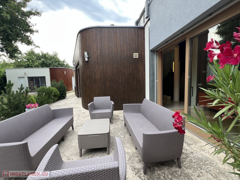 Tisztelettel ajánljuk figyelmébe ezt a kivételes adottságú, háromszintes, 618 m² hasznos alapterületű, újszerű állapotú családi házat, valamint a hozzá tartozó különálló vendégházat és gazdag kertépítészeti, wellness és technológiai háttérrel rendelkező építményegyüttest.