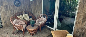 A kert rendezett, 5 mandulafával, 1 cseresznyefával és 40 tujával. Található benne egy kis tó, szalonnasütő és sziklagrill, valamint rönkfából készült gyerekjátszótér. Emellett egy 30 m²-es faház is rendelkezésre áll, amely raktárként használható, előterében pedig felfújható jakuzzi kapott helyet.