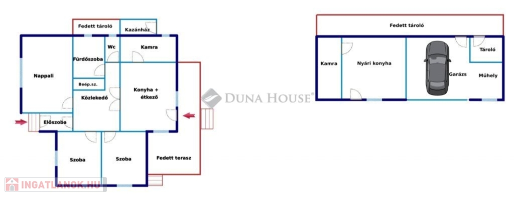 Fedett beálló két autó és kerékpárok részére, elektromos kapuval.