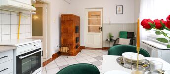 A ház fűtése konvektoros, de működő csempekályha is rendelkezésre áll – hangulatos és alternatív fűtési megoldásként is használható.