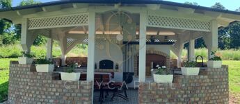 A vendégház (kiskastély) kb. 180 nm, ahol egy nagy nappali, étkező, konyha, két hálószoba és két fürdőszoba kapott helyet.