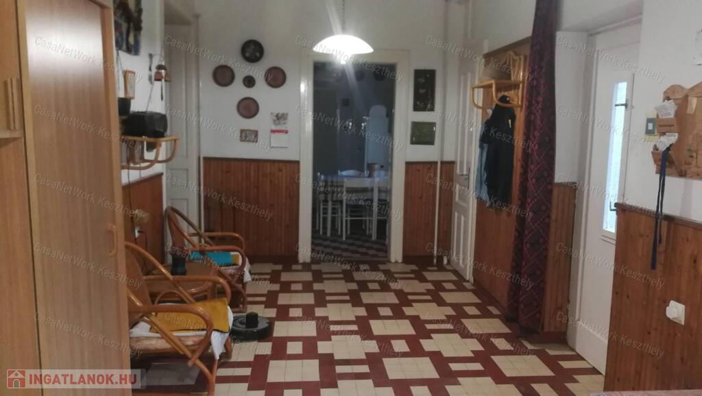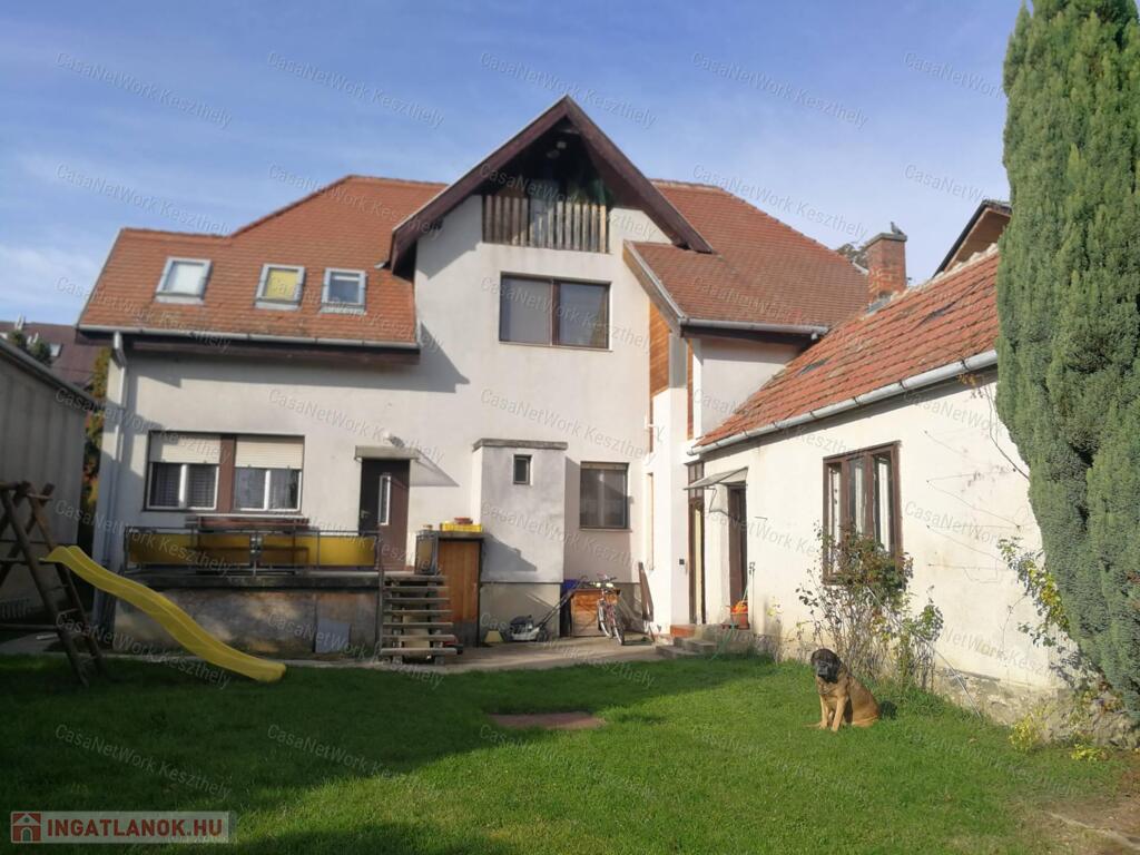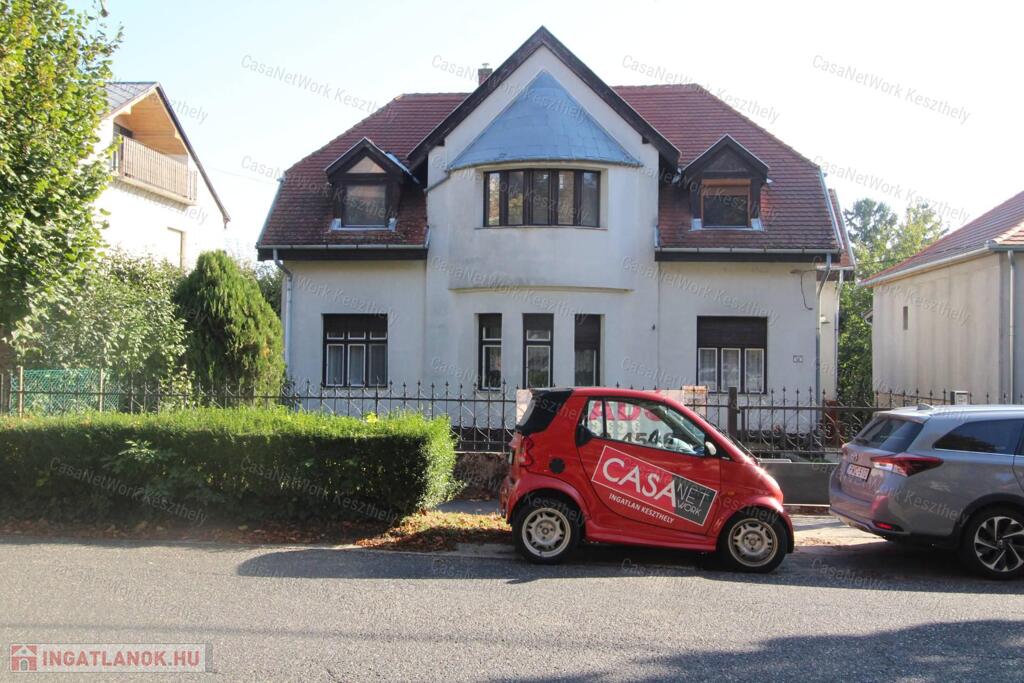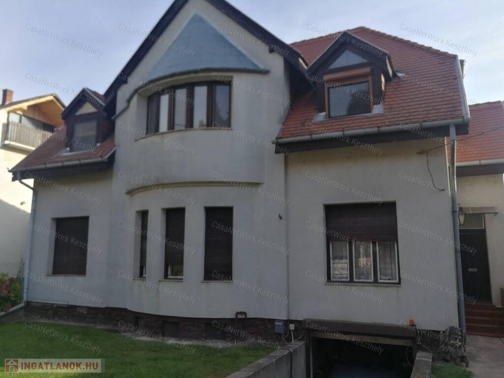 Kiváló elhelyezkedéssel, Keszthely belvárosában eladó egy nagypolgári jellegű, kétszintes, kétlakásos családi ház, 772 m² telken, garázzsal, hátsó gondozott kerttel.