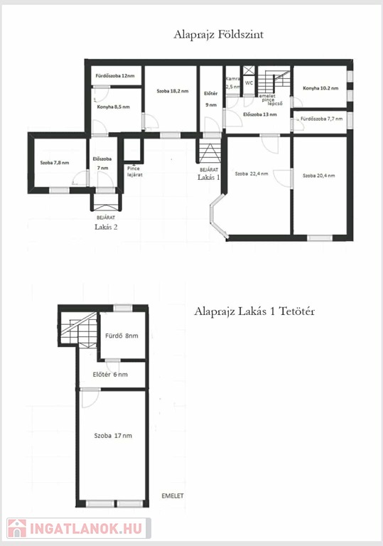 -Tetőtér: fürdő+WC, szoba (30 m²)