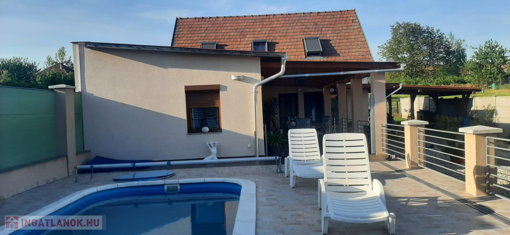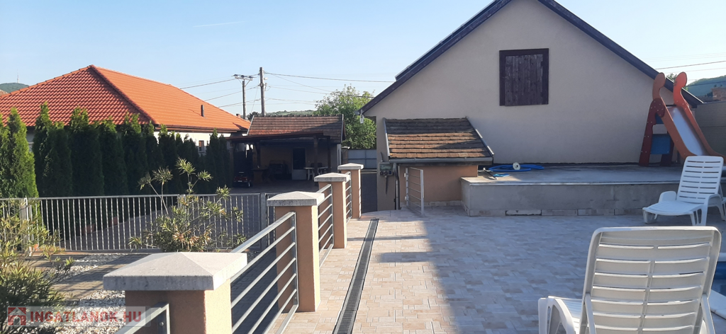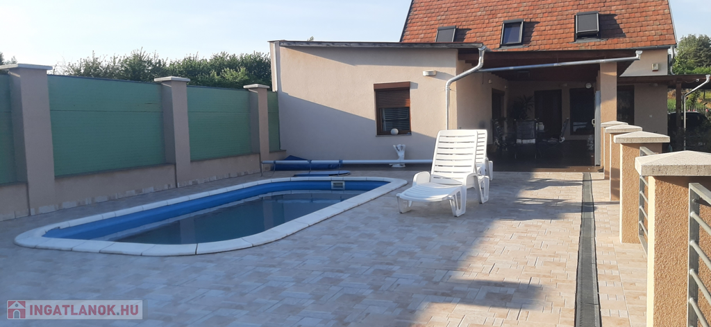 42 m²-es fedett terasz + 96 m² medencetér