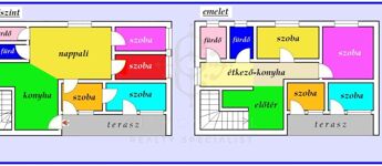 Kétszintes, 300 nm hasznos alapterületű, részben felújított családi házat kínálunk eladásra a hangulatos Duna-parti község csendes utcájában. A település centrumától mindössze néhány percnyire, a Dunától karnyújtásnyira elhelyezkedő,1.111 nm-es gondozott telken álló ingatlan 1981-ben épült. Az épület rendkívül masszív alapja, kiváló statikai állapotban lévő falai kiváló lehetőséget kínálnak a teljes körű felújítás számára, lakóház, munkásszálló, vagy akár panzió kialakítására is. A családi ház 150 nm-es földszintjén a tágas nappalihoz 4 világos hálószoba, konyha, 2 fürdőszoba és WC kapcsolódik. Az emeleten részben már kialakított 4 db hálószoba, étkező-konyha, előtér, 2 fürdő és WC foglal helyet. Az összközműves ingatlanba az ipari áramot is bevezették. Az eredetileg központi fűtéssel rendelkező ingatlan új fűtési rendszerének kialakítása az új tulajdonosra vár. A főépület mellett álló 45 nm-es, szintén felújításra váró épületrész a családi ház bővítésére kínál lehetőséget. Az udvaron található, boltívesen falazott, esztétikus kialakítású pince zöldségek, gyümölcsök tárolására, esetleg rendezvény terem, borkóstoló kialakítására is alkalmas lehet. Az eladásra kínált ingatlanból rendkívül kedvező elhelyezkedésének köszönhetően iskola, óvoda, bolt, buszmegálló könnyen megközelíthető.
