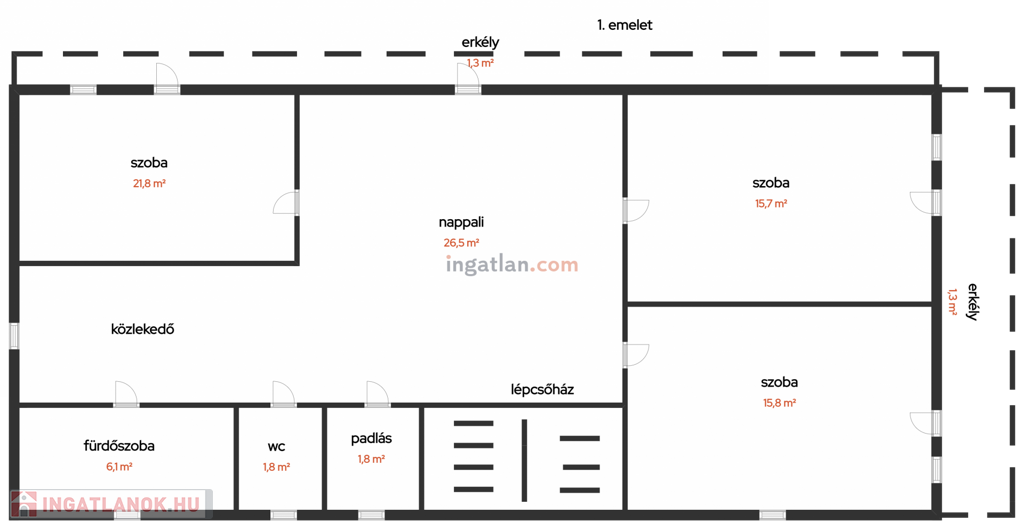 Az ingatlan különlegessége, hogy 5 szobával, két nappalival, két fürdőszobával és két erkéllyel rendelkezik, így minden generáció számára biztosítja a kényelmes együttélést. A földszinten konyha és étkező kapott helyet, az udvar rendezett, a telek pedig 1000 m²-es, teljesen körbekerített.