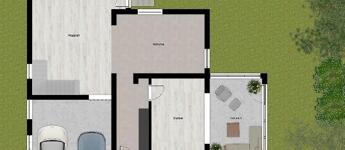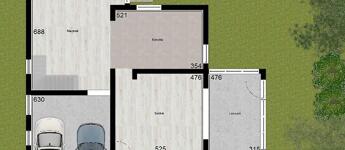 A földszinten (bruttó: 127 nm) egy tágas, közel 6 m-es csúcsmagassággal rendelkező, 35 nm-es nappali, egy 18 nm-es konyha, egy 28 nm-es szoba, egy 15 nm-es télikert és egy 30 nm-es dupla garázs található.