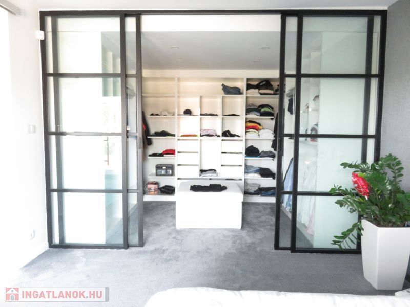 * Garázsszint 90 m2: duplagarázs (50 m2), gardrobe (13 m2), mosókonyha (~16 m2), kazánház (~5 m2)
