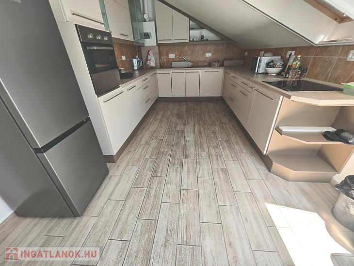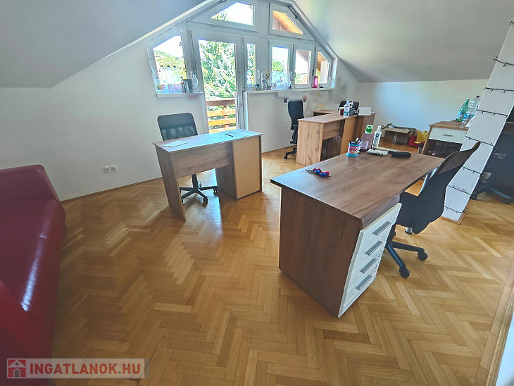 • Emelet: 3 szoba, 1 konyha, 1 gardrób, 2 fürdőszoba, 1 külön wc található. A nagy szobából nyílik egy 9,96nm-es erkély, amely hátsó kertre néz és gyönyörű kilátást biztosít az Apáthy-sziklára