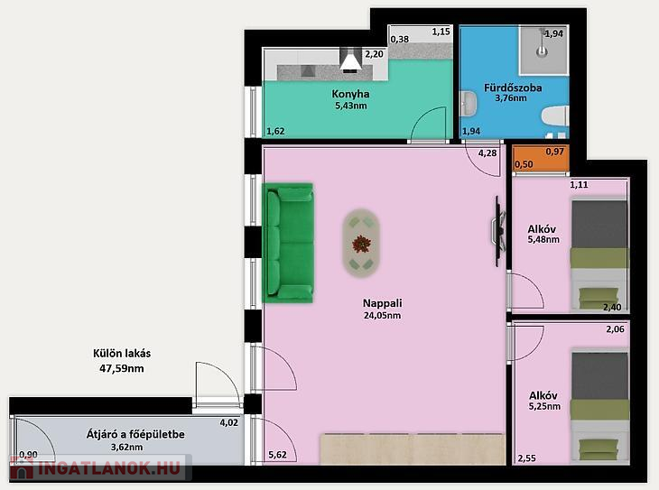 • Külön bejáratú garzonlakás: ideális idősebb családtagnak, tinédzsernek, irodának vagy kiadásra
