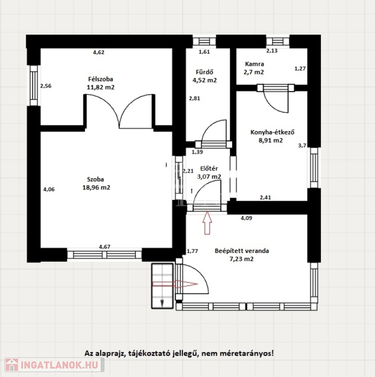 - 7,23 m² beépített veranda- gardrób,
