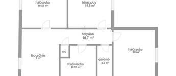 Magasföldszint: tágas, amerikai konyhás nappali (innen nyílik a nagy terasz), fürdőszoba és külön mellékhelyiség, közlekedő és lépcsőház.