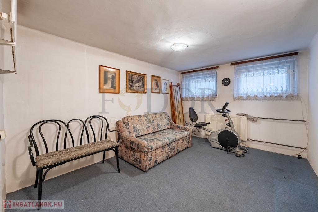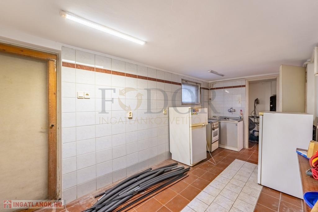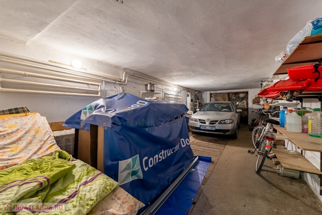 A szuterén 90 m²-es alapterületű, amely tárolóhelyiségeket, szobát, gépházat, mosókonyhát, fürdőt, WC-t és két autó számára garázst (szerelőaknával) tartalmaz. Ez a szint üzleti célra is tökéletesen alkalmas.
