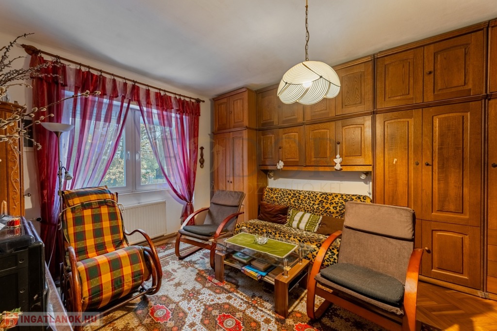 Eladó Budapest XVIII. kerületében, Pestszentimre területén, 450 m²-es parkosított telken, egy 1976-ban épült, 2008-ban teljes körű felújításon átesett, három szintes ikerház. A ház dryvitos szigeteléssel (10 cm), új hőszigetelő műanyag nyílászárókkal, padlófűtéssel az emeleten és kétautós garázzsal (szerelőaknával) rendelkezik. A fűtést gázcirkó biztosítja, az ingatlan tehermentes.