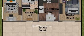1. lakrész (90 nm): előszoba, konyha étkezővel, két szoba, kádas fürdőszoba, valamint egy impozáns, 80 nm-es terasz.