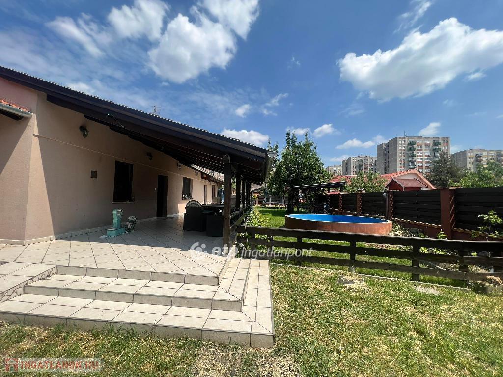 Eladásra kínálom Budapest XXI. kerületében, Csepel-Kertváros csendes, rendezett környezetében ezt a kertes, körbejárható családi házat, két épülettel, parkosított telekkel, medencével és egy 15 nm-es szaletlivel.