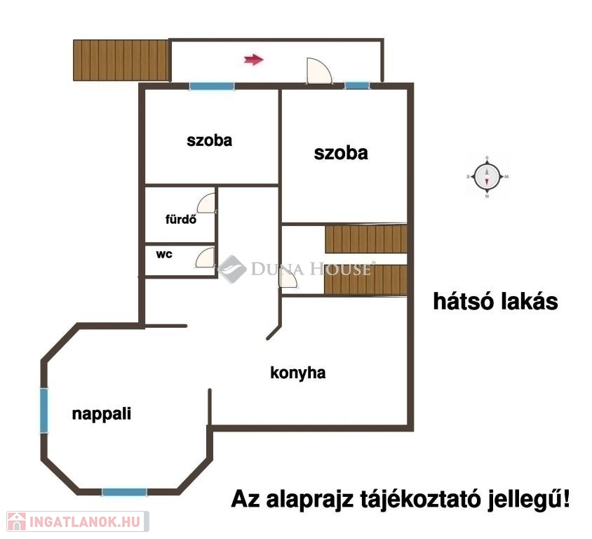 A lakásokhoz kívülről külön lépcsőn lehet bejutni, de belső lépcsőház is összeköti őket!