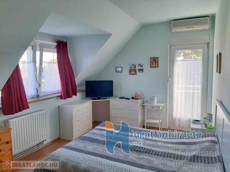 Elhelyezkedése: Belterület Tájolása: Dél-nyugai tájolású Állapota: Jó Komfort besorolása: Dupla komfortos Építési éve: 1995 Alapterülete: 210 m2 Telekterülete: 593 m2 Szobák száma: 4szoba Közművek: Gáz, Víz, Villany, Csatorna Gázellátás: Vezetékes Vízellátás: Vezetékes víz Melegvíz-ellátás: Gázkazán, Villanybojler Áramellátás: 230V Fűtés módja: Gáz Fűtés típusa: Cirkó Homlokzat állapot: Jó Építési mód: Tégla Tető formája: Magas Parkolási lehetőség: Garázsban Jellemzői: Alacsony rezsi, Csendes környék, Jó közlekedés, Két bejárat, Légkondicionáló, Étkező, Udvari terasz, Kert Energetikai besorolás: A Egyéb jellemzők: Erkély, Terasz, Pince Tv, Internet: Internet Közelben: Iskola, Óvoda, Autóbuszállomás Terhelések: Tehermentes ingatlan