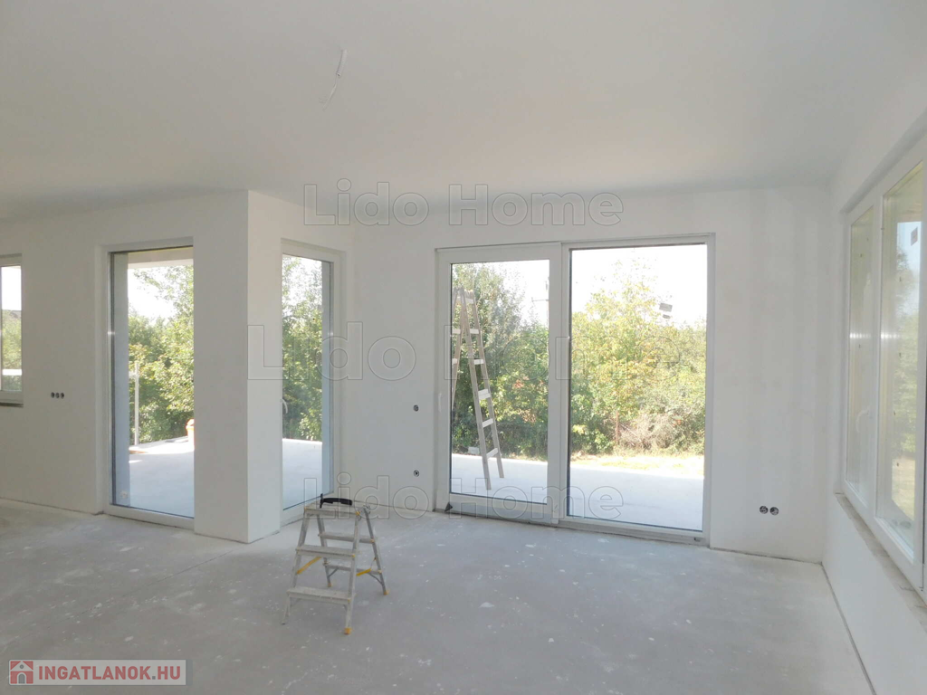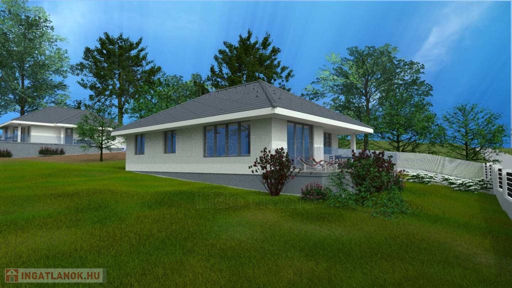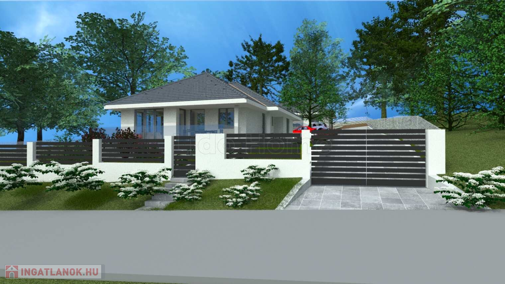 Egyszintes, 129 nm-es CSALÁDI HÁZ nagy nappalival, 3 hálószobával, részben fedett teraszokkal eladó.