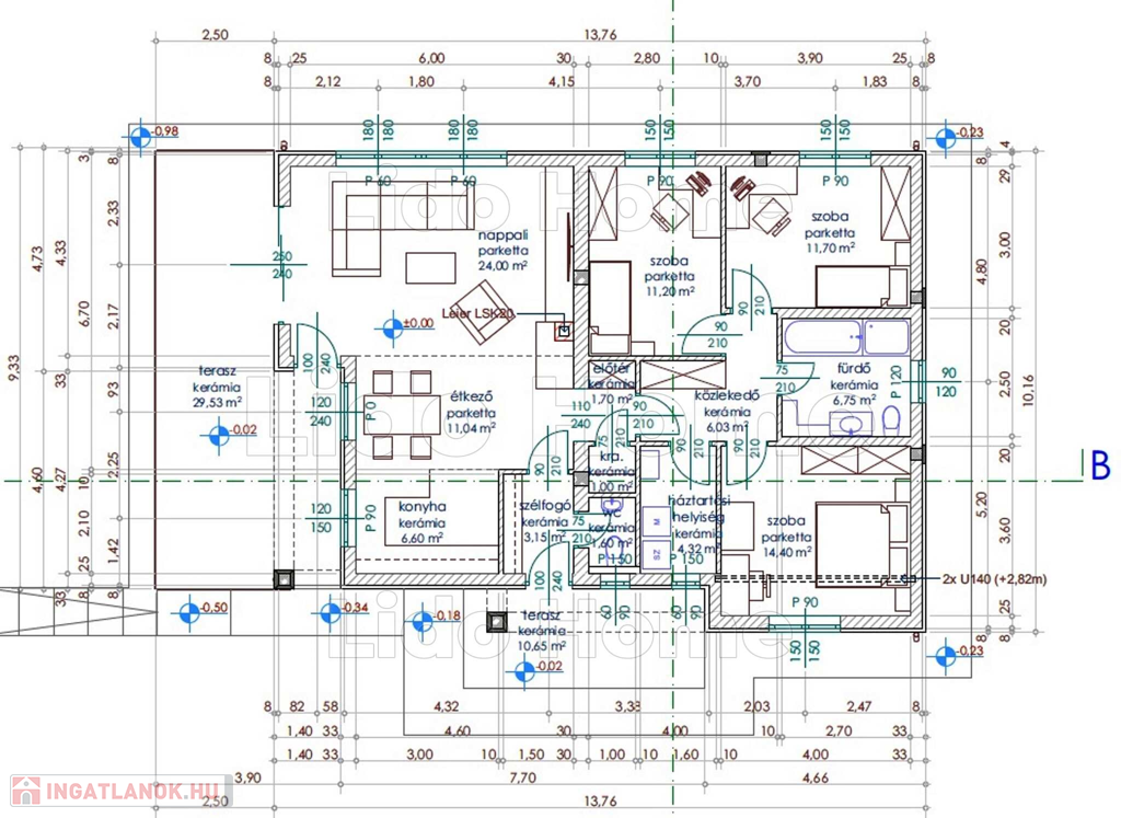 - 2024-ban épül Ytong téglából, a homlokzat 8 cm-es Grafittal szigetelve, a födém 20 cm-es fújható üveggyapottal