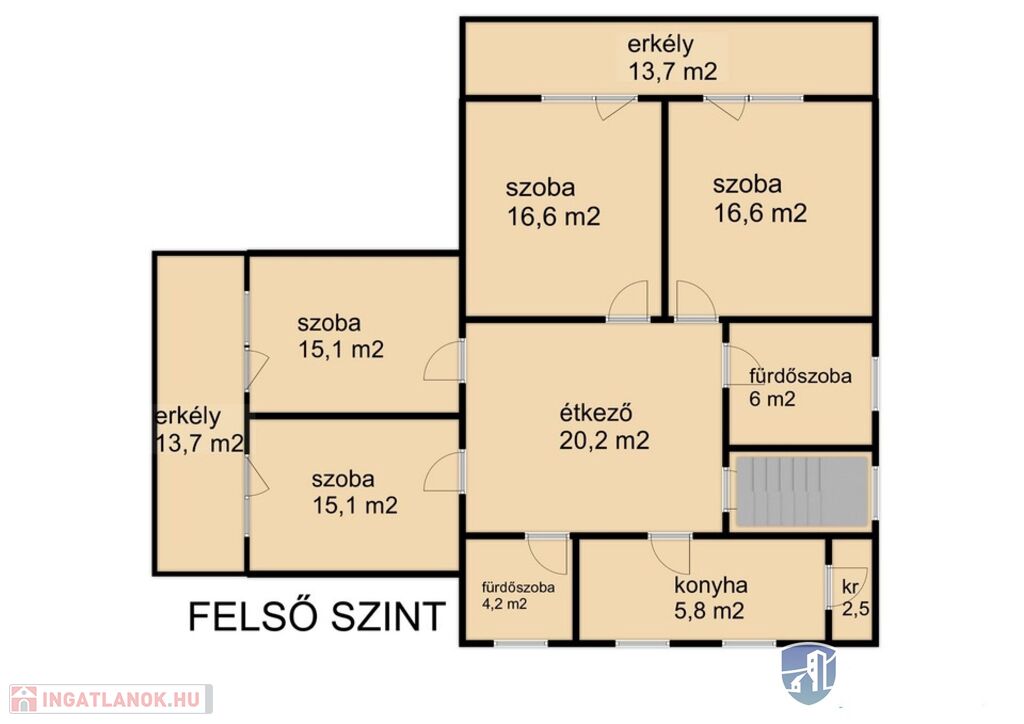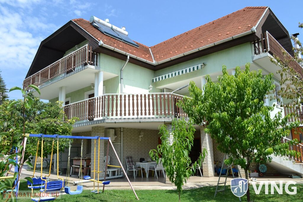 -az emeleten pedig : szintén külön bejárattal, konyha-étkező és 4 szoba, fürdőszoba, konyha, kamra és ugyancsak nagy méretű erkély található. (itt láthat egy kis panorámát a Balatonból)