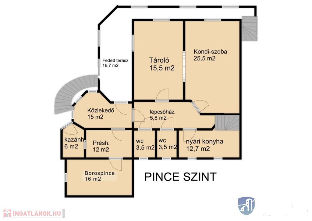 -pince szintjén, borospince, vizes blokk , konyha, két nagyobb helyiség is található amely több célra is alkalmas. (kondiszoba, műhely, játszó szoba..stb) - lakássá alakítható!
