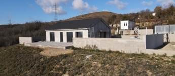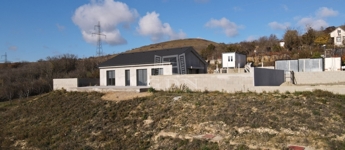 A 1100 négyzetméteres telek körbekerített, a bejutás kényelmét elektromos kapu garantálja. A terepviszonyok kiegyenlítése céljából masszív vasbeton támfal épült.