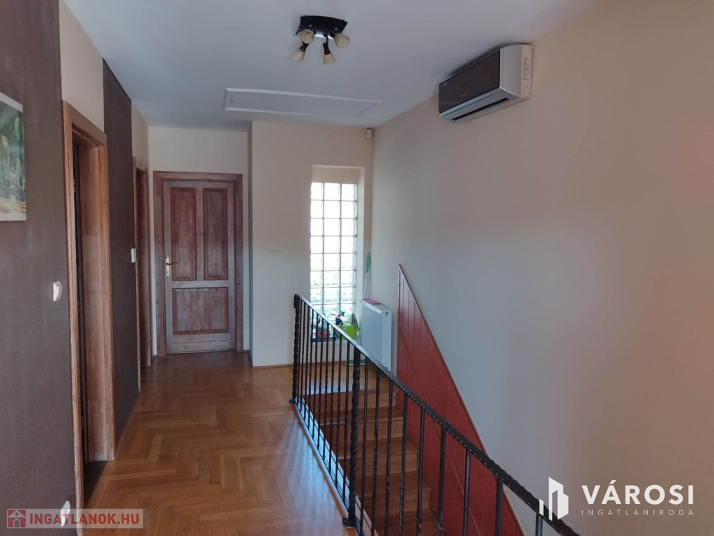 Debrecen kiemelt zöldövezetében a Liget lakóparkban, 125 nm-es 3 szoba nappalis szélső sorház 300 nm telekkel eladó. Az ingatlan csendes igényes szép környezetben helyezkedik el, és mivel nem közbülső sorház így a telek is nagyon jól élhető, rendezett parkosított, szép nagy teraszos, és a ház is 3 oldalról körbe járható. A ház elosztási kiváló, a földszinten található a nappali étkező konyha, egy wc mosdó, és természetesen a garázs. A felső szinten pedig 3 hálószoba, fürdőszoba wc, és egy szép nagy terasz. Ha egy igazán exkluzív helyen keres egy igazán jól megtervezett élhető házat akkor hívjon és nézze meg!