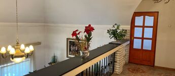 A ház tágas belső terekkel rendelkezik, a nappaliban egy gyönyörű galériás rész is található. A családias meleg légkör három fűtési móddal teremthető meg, gáz kombikazánnal, vegyes tüzelésű kazánnal, valamint egy szép, épített kandallóval.