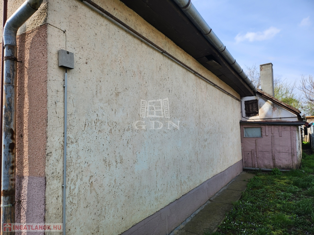 A jó állapotú kis kertes ház 1970-ben épült, beton alappal és 50cm-es vegyes falazattal (vályog+tégla). A tetőszerkezete jó állapotú sátortető, cserépfedéssel ellátva. Az épület fűtése gázkonvektorral és cserépkályhával van megoldva. Az épületbe villany, víz, gáz és csatorna be van kötve.