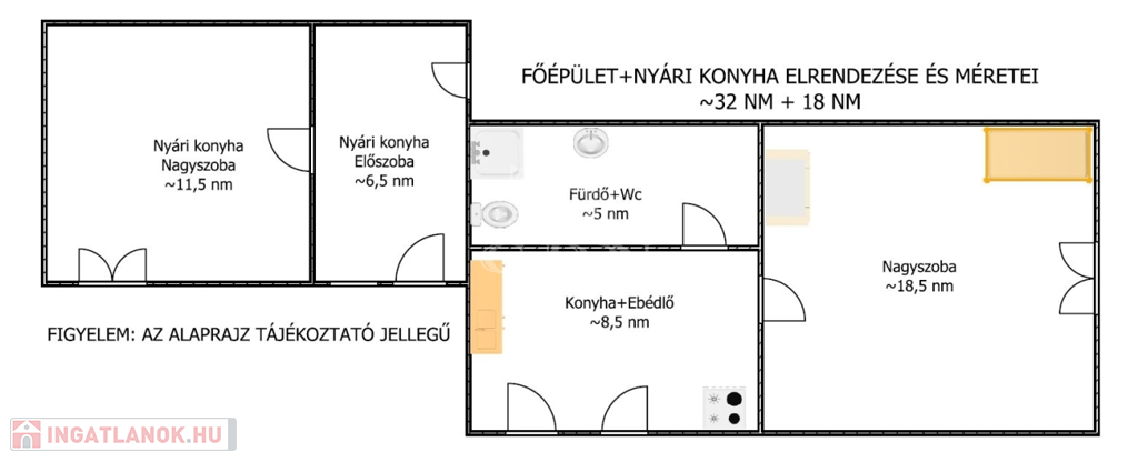 Az épület + nyári konyha hasznos alapterülete 50 nm melyben található: