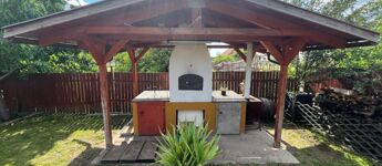 A kert igazi oázis: parkosított udvar, kerti grillezőhely és kemence teszik élvezetessé a szabadtéri időtöltést. A fúrt kútnak és a hidrofornak köszönhetően kertjét gazdaságosan és könnyedén tarthatja karban, a kertvilágítás pedig este is lenyűgöző látványt nyújt.