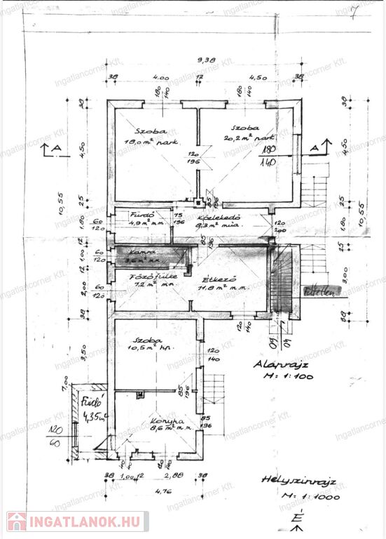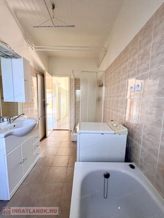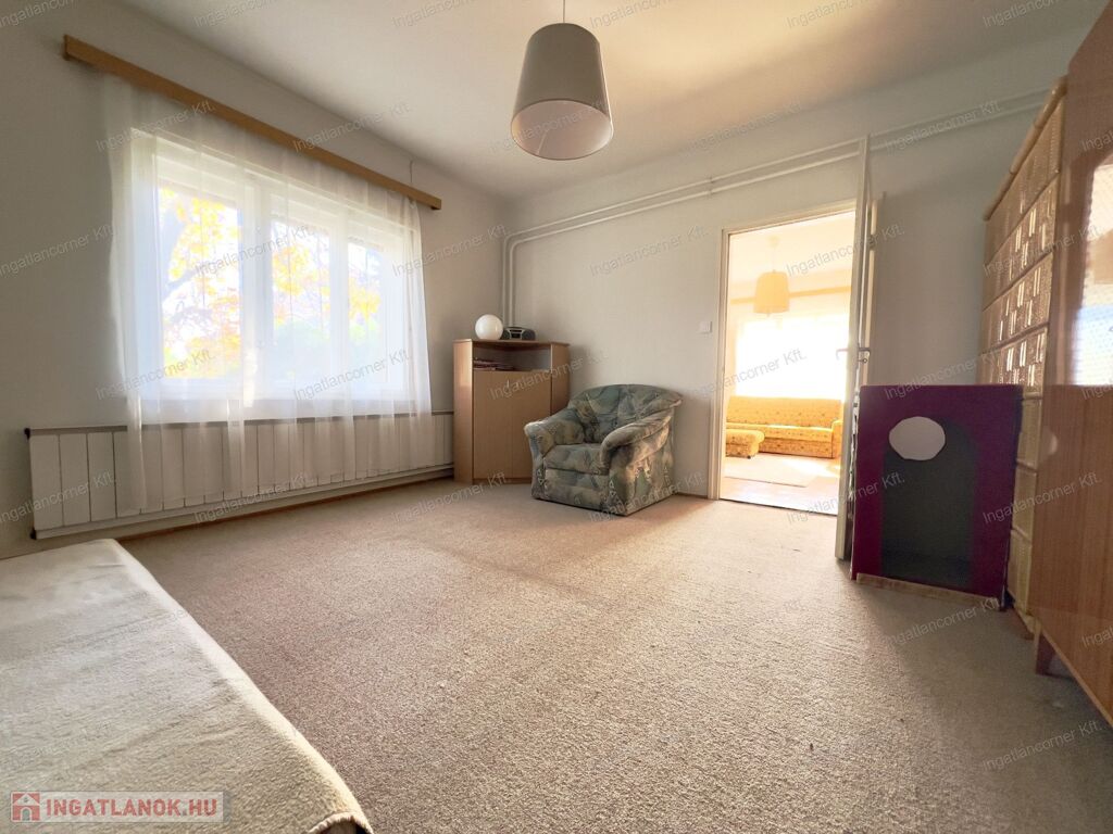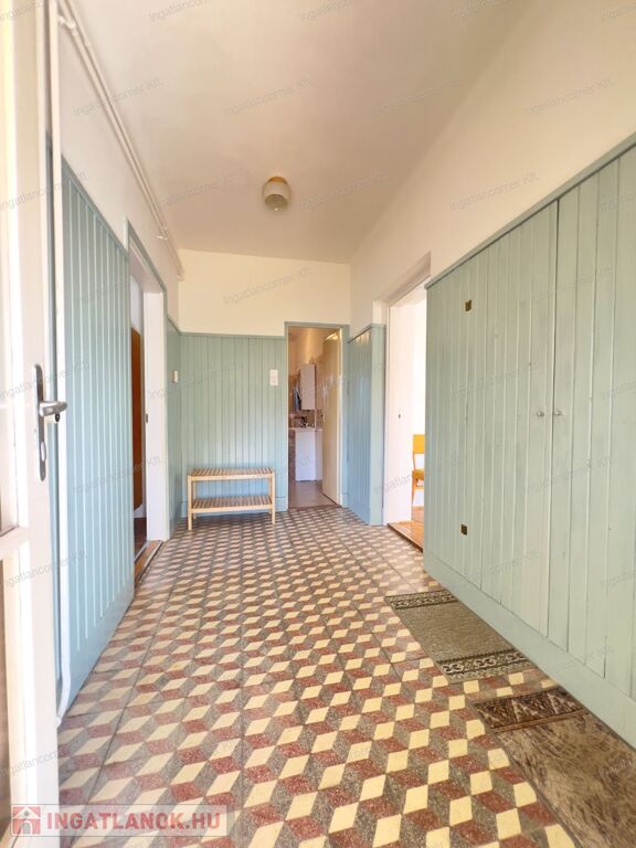 A 100nm-es ház, jelenleg kettő lakásból áll, mely könnyedén egybe nyitható és a mai kornak megfelelő elrendezése lehet.
