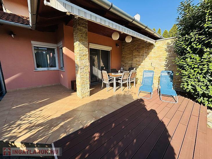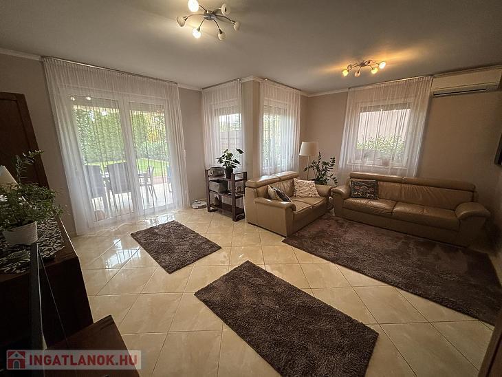 Kertvárosi, csendes, nyugodt utcában, saját garázzsal, nagy terasszal, kertel rendelkező jó állapotú 144nm-es ikerház fél eladó Dunakeszi közkedvelt részén a Tóvárosban!