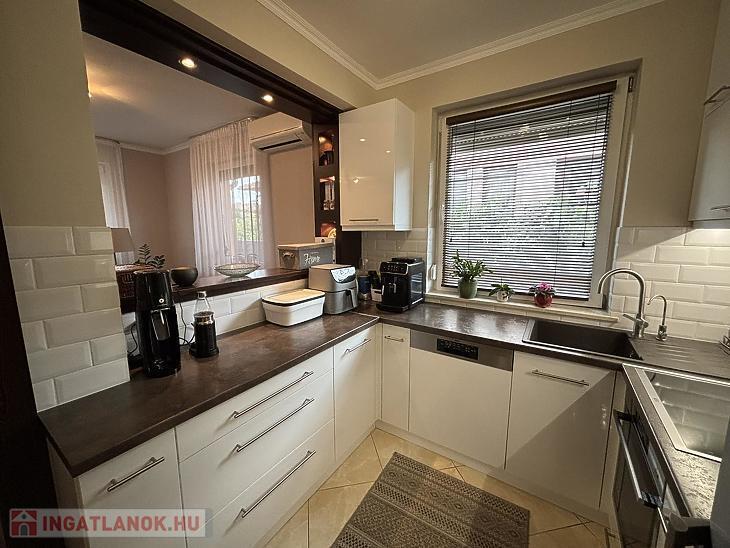 Szinte minden bútor ide lett tervezve, és beépített. A konyha gépesítéssel együtt az ár részét képezi.