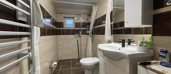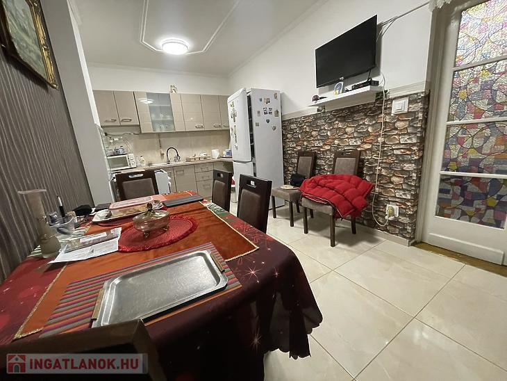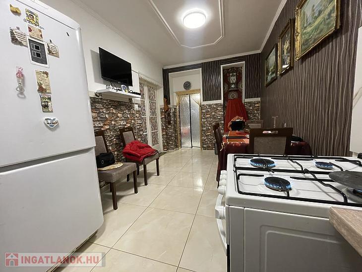 Elosztás: előszoba, konyha–étkező, nappali, zuhanyzós fürdő-WC, mosókonyha.