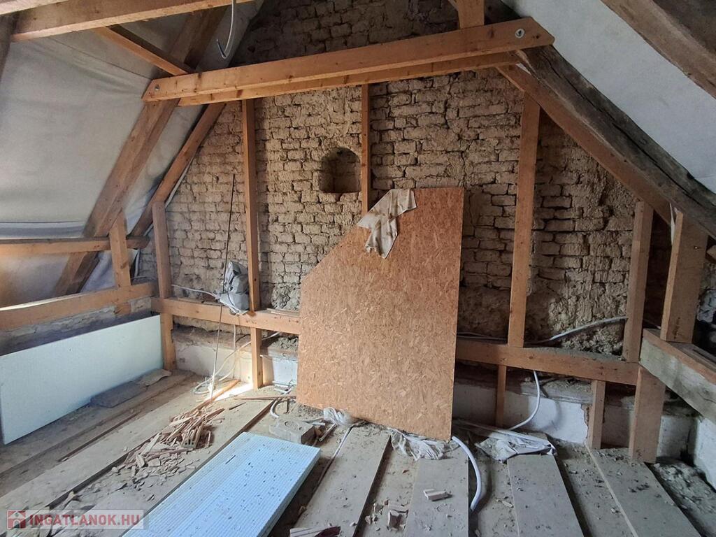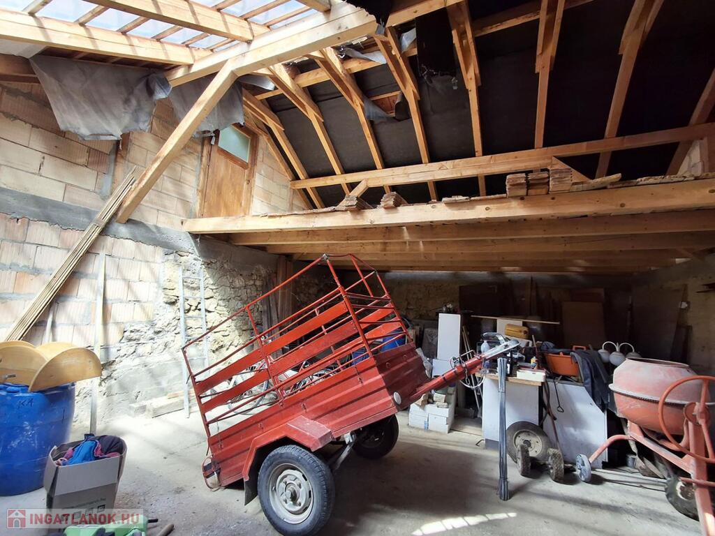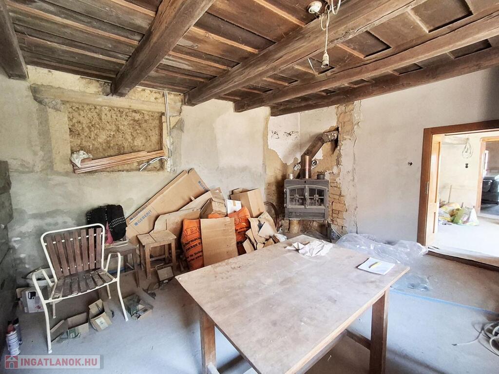 Az ingatlanba belépve a konyhába érkezünk, ahol egy mázas kemencét építettek, mely főzésre/sütésre és az ingatlan fűtését is ellátja, ha a padlófűtéssel és a radiátorokkal összekötésre kerül. Balra nyíló nappali helyiségben egy kandalló építés megkezdődött, amely kialakításnak köszönhetően szintén az egész ingatlan fűtésére alkalmas. Az utcafronti szoba kiválóan alkalmas hálószobának, a tetőtérben még egy gyerekszoba kialakítását megkezdték, igény szerint a tetőtér további beépítésre is alkalmas. Az ingatlanban még egy kamra, egy külön wc és fürdőszoba + wc kialakítása is megkezdődött. A gazdasági épület irányába is tovább bővíthető az ingatlan. A garázs méretének köszönhetően akár 3 autónak is helyt biztosíthat.