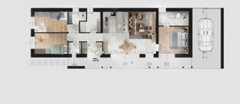 A település egyik rendezett utcájában kerülnek kialakításra az igényes megjelenésű, magas műszaki tartalommal bíró házak. Telkenként két lakóegység kerül kialakításra egymástól teljesen elválasztva, egyenként kizárólagos használatú kertekkel. A lakóépületek nettó alapterülete 90,39 nm, közéjük 1-1 autó elhelyezésre szolgáló, (25,4 m2) fedett autóbeálló kerül. A házak itt érnek össze, lakóhelyiség falai nem érintkeznek egymással, továbbá egy-egy felszíni gépkocsibeálló is kialakításra kerül. A házak mindegyikénél nyitott 20,4 nm alapterületű tornác jellegű fedett terasz szolgálja a teljes kényelmet, közvetlen kapcsolattal a nappaliból.
