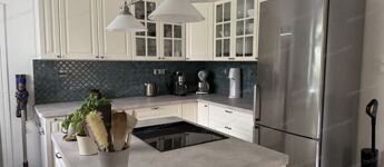- étkezővel egybenyitott konyha beépített IKEA konyhabútorral