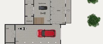 A bejárati szinten (233nm) találjuk a tágas előteret, a szaunával is felszerelt sportszobát, a gépészeti helységeket, tárolókat, kamrákat és a 107 nm-es, 4 autót is kényelmesen befogadó garázst.