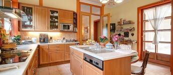 A földszint központi részen egy 80 nm-es, kandallóval rendelkező, teraszkapcsolatos nappali található, melyben egy részben szeparált olvasószekció is kialakításra került. Szomszédságában a tágas, minden igényt kielégítő kert és teraszkapcsolatos, étellifttel szerelt, teljeskörűen gépesített, konyha és az ugyancsak kényelmes méretű étkező kapott helyet.